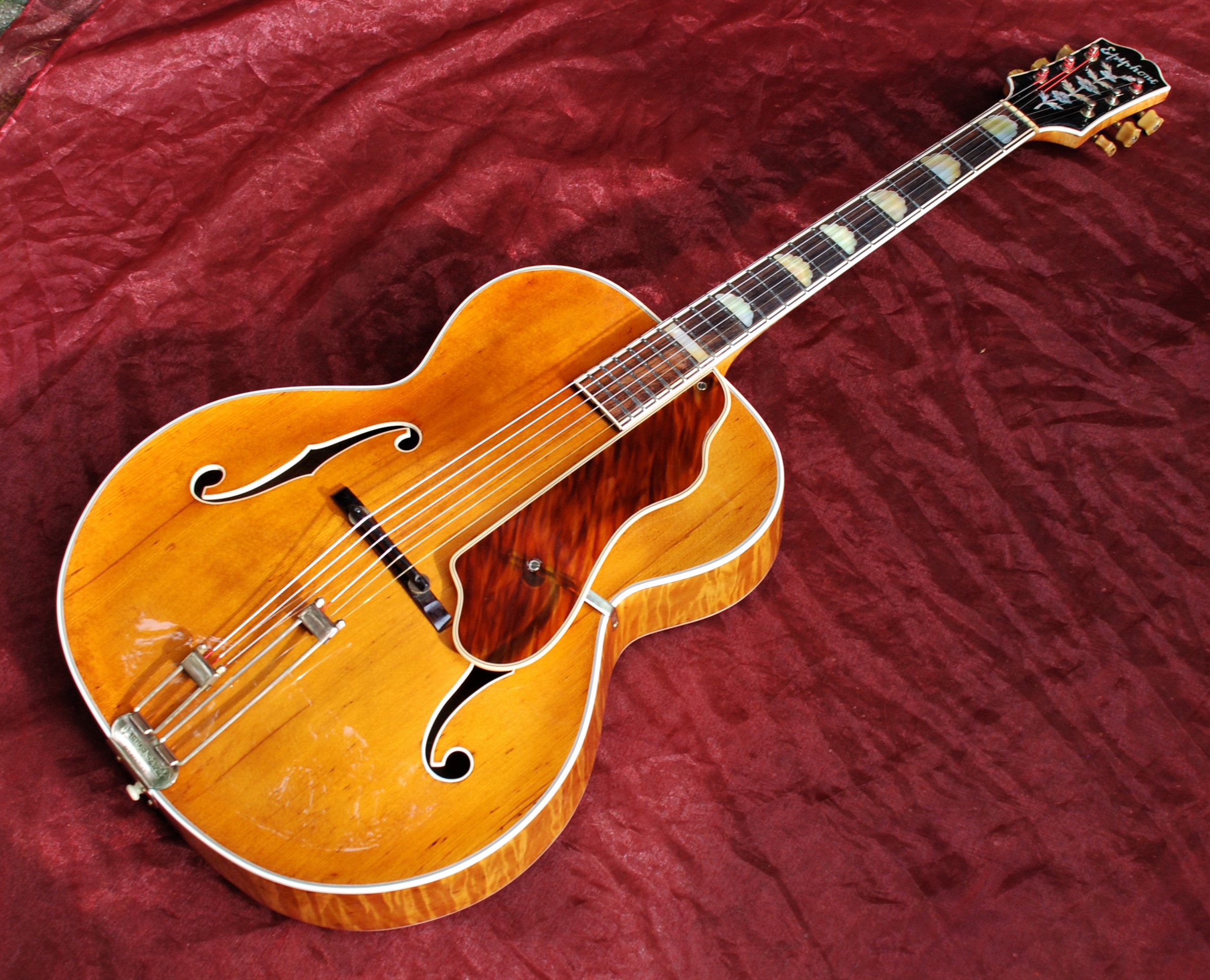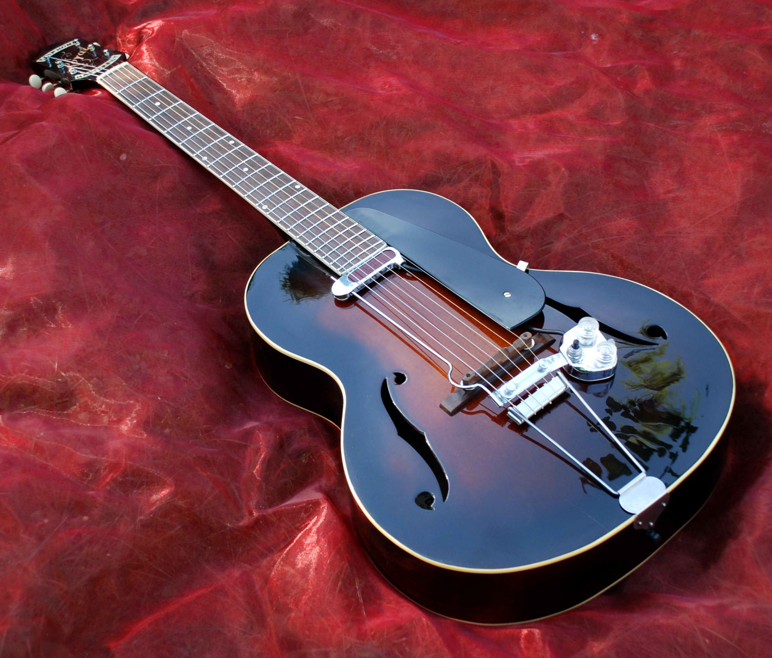 Diese sehr frühe Höfner Club 50 hat sämtliche Originalteile, inklusive der beiden „Black Bars“, die kultigen schwarzen Tonabnehmer, die bei den ersten Modellen, wie hier, aus Ebenholz gefertigt sind. Die originale Lackierung konnte erhalten werden!